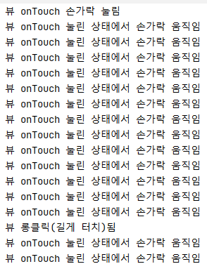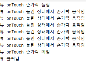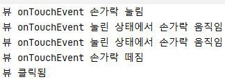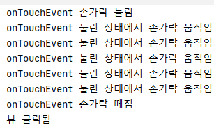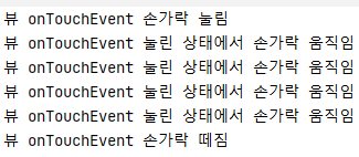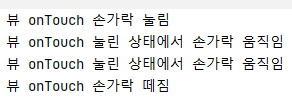 터치를 유지하거나 떼도 MotionEvent_ACTION_MOVE, MotionEvent_ACTION_UP에 해당하는 로그는 출력되지 않는다.