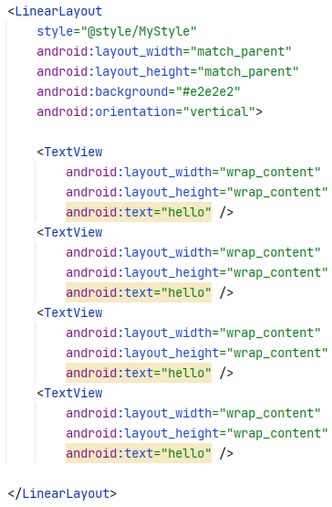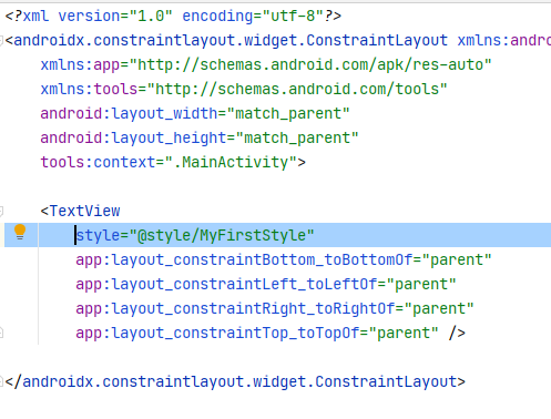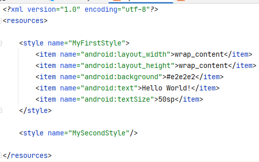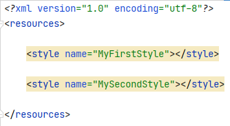 레이아웃 파일 내부에서 @style/MyFirstStyle , @style/MySecondStyle로 사용될 수 있다.