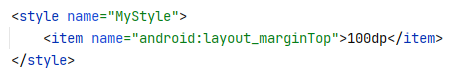 위의 예제에서 style=@style/스타일이름 으로 적용하면 해당 뷰, 뷰그룹만 스타일이 적용되었다.(마진 탑 테스트)
