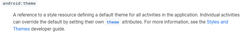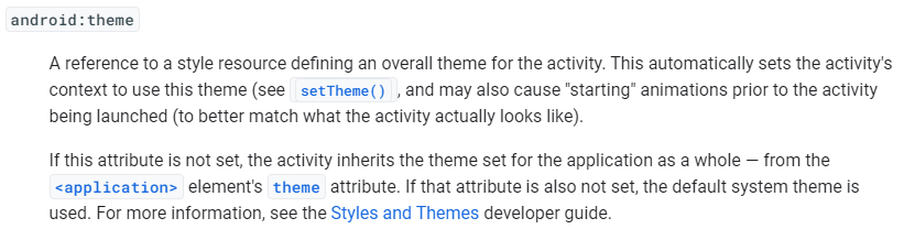 설정되지 않으면 <application>태그의 theme속성을 상속받는다.