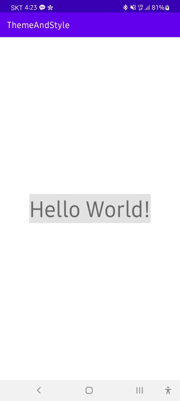 android:theme=@style/스타일이름 으로 적용하면 해당 뷰, 뷰그룹의 자식들 모두 스타일이 적용된다.