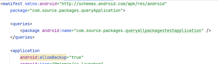 미리 매니페스트 파일에 쿼리할 패키지 이름 또는 인텐트 필터 서명을 <queries>로 지정하여야 한다.