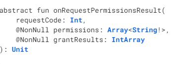 requestPermissions(액티비티: Activity, 권한들: String[], 리퀘스트 코드: Int)