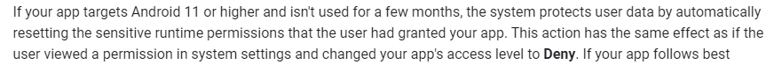 시스템이 사용자의 데이터를 보호하기 위해 민감한 runtime 권한을 몇달마다 자동으로 리셋시킨다