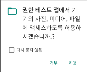 앱 설치후 계속 거부한다고 가정하고 두번째 권한 요청부터 다시 묻지 않음이 포함된 다이얼로그가 뜨는데
