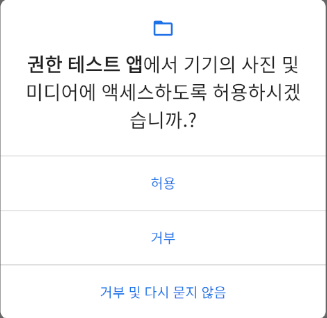 권한 요청시 바로 다시 묻지 않음이 포함된 다이얼로그가 출력되며 기존의 경우처럼 동작
