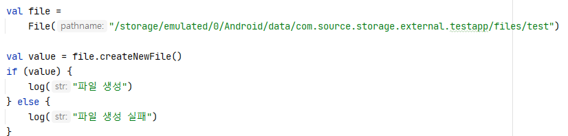 파란색 앱에서 testapp의 외부저장소 앱 개별공간에 빈파일을 쓸 수 있는지 테스트